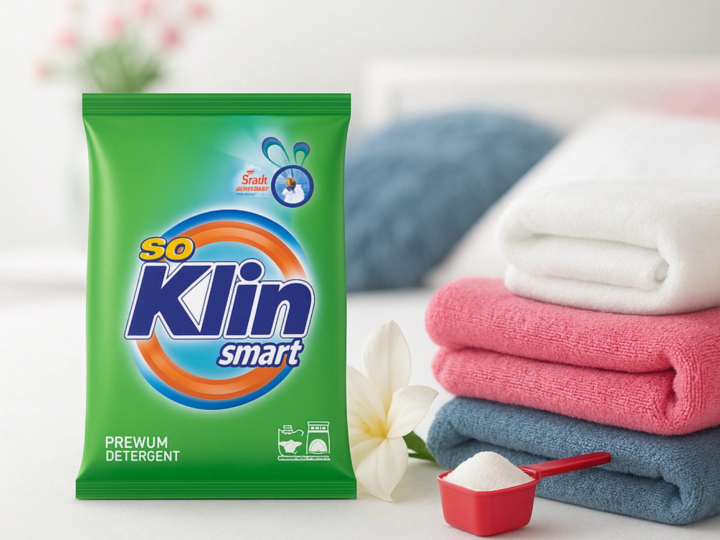 So Klin Smart is a premium detergent powder, that removes tough stains** like ketchup, chocolate etc. and also cleans tough-to-clean areas** like cuffs & collar effortlessly.